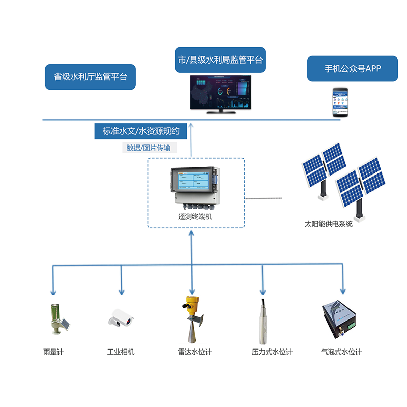 水雨情自動監測系統用于水利管理部門遠程監測水庫、河道、灌區、堰閘等水利設施的水位、降雨量的實時數據, 同時支持遠程圖像監控,為保障水庫的適度蓄水和安全度汛提供了準確、及時的現場信息。